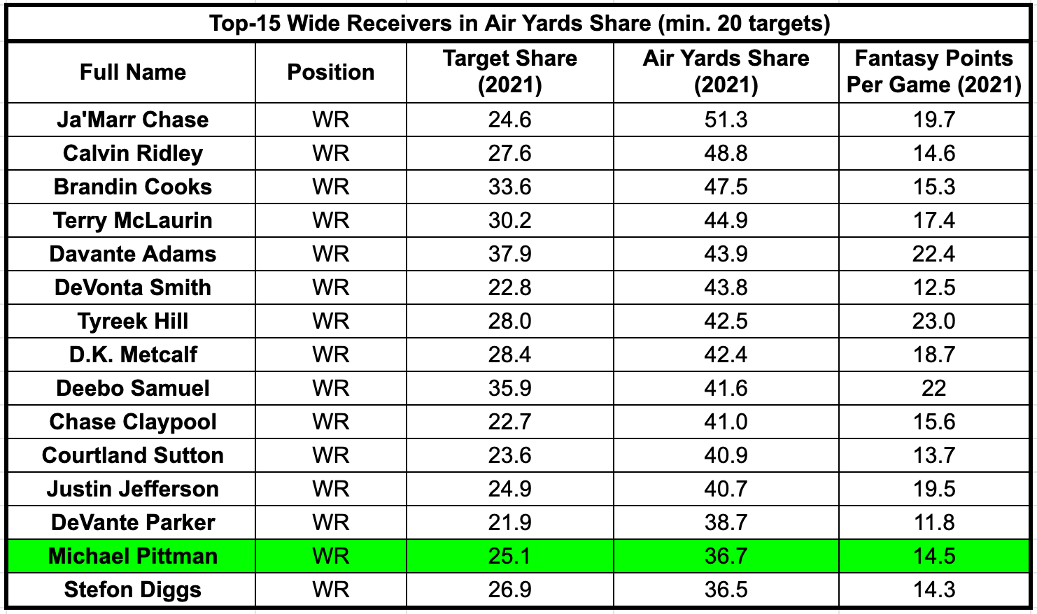 58 rows Top Wide Receivers - Weeks 1 to 18 2021.